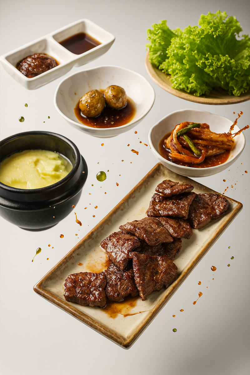At Baik Su, the experience centers around connection — to flavors, to tradition, and to those around you. The charcoal grill takes center stage, bringing to life the rich aromas of marinated meats and the comfort of smoky, tender bites. Side dishes are thoughtfully presented, each carrying the subtle depth of authentic Korean home cooking, never overwhelming but always complementing the main event.